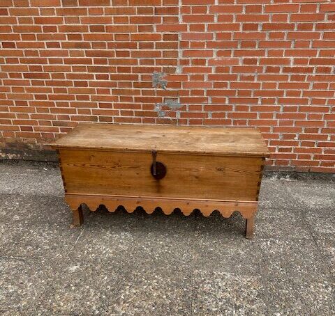 Arcon antiguo estilo rustico Realizado en madera de pino Con patas y faldon tallado.