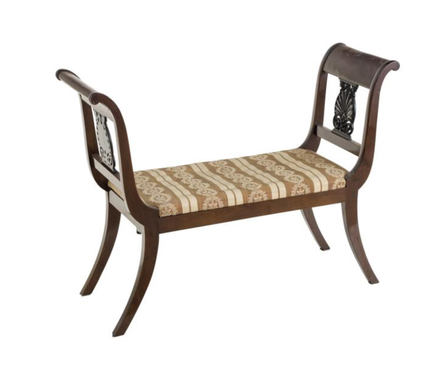 Banco antiguo estilo fernandino Realizado en madera de caoba con tapicería textil