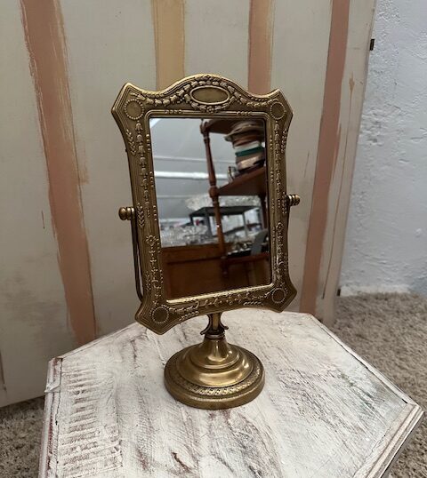 Espejo sobremesa tocador Realizado en bronce . Antiguo , basculante.