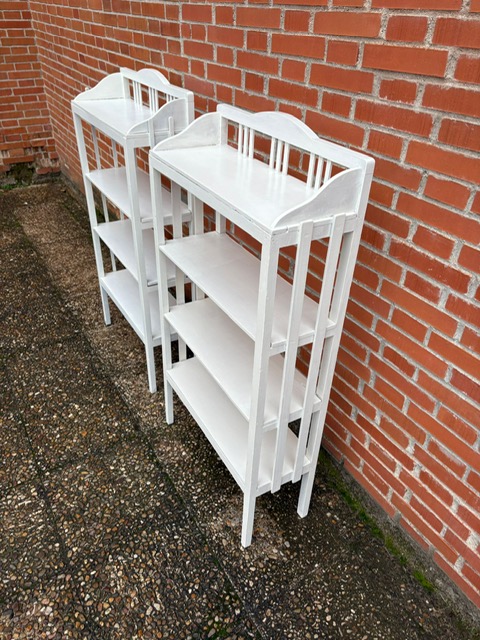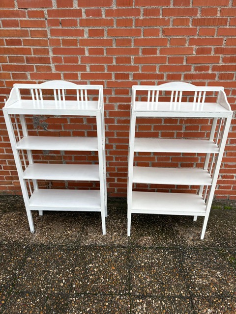 Estanterias antiguas estilo rustico Realizada en madera con acabado pintura blanca Disponemos de dos unidades Epoca princio de siglo.