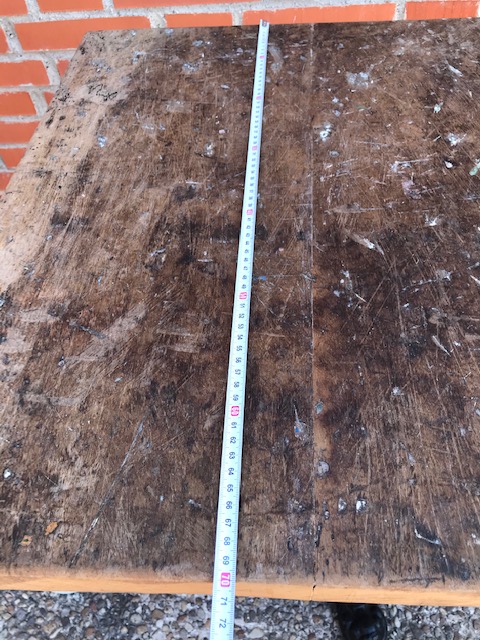 Mesa estilo industrial bar Francesa, tapa madera pie hierro lacado negro.