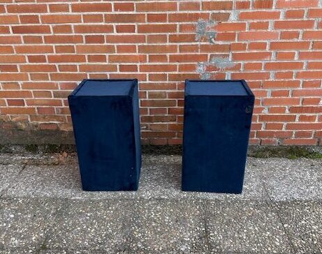 Pareja de peanas o expositores de madera Tapizadas en terciopelo azul. Medida