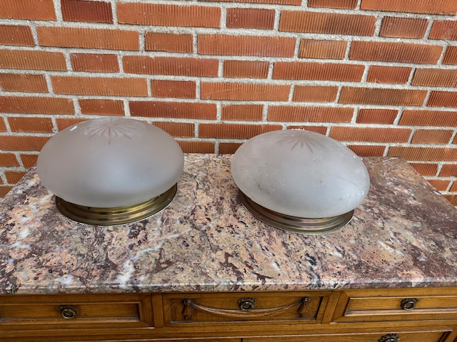 Plafón de techo , antiguo metálico con tulipa de cristal.