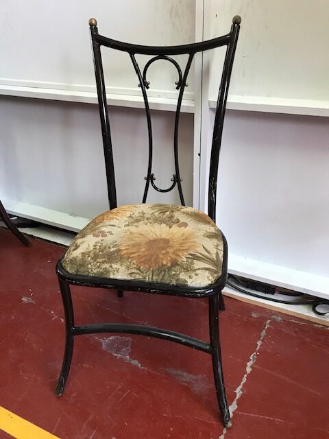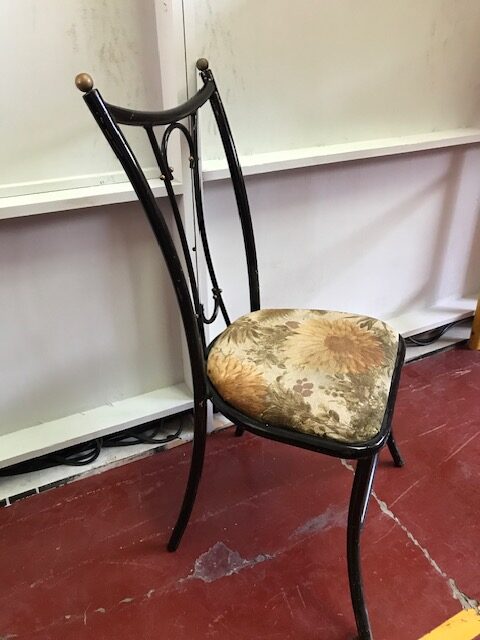 Sillas” Artespaña” , años 70 en hierro y tapizadas a juego mesa tapa mármol.