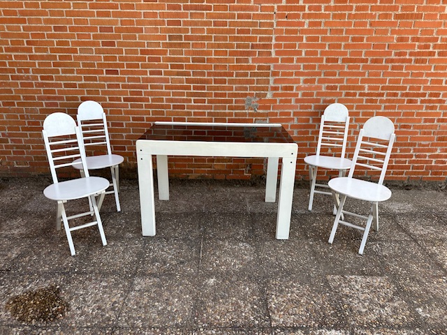 Juego de sillas vintage originales. Son 4 sillas a juego con mesa . Realizadas en madera con acabado laca blanco.