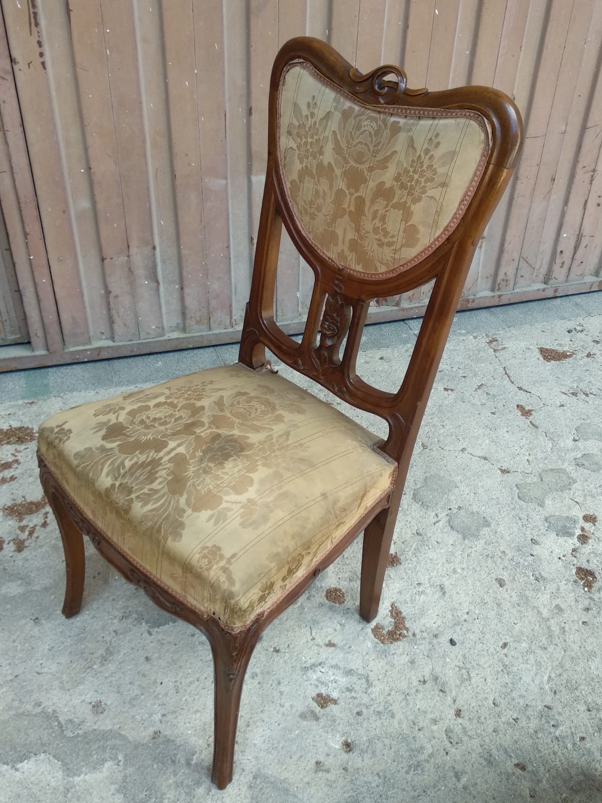 Fantastico sofa “art nouveau”. En madera de nogal talla manual. A conjunto de 2 butacas y sillería. Muy buena pieza.