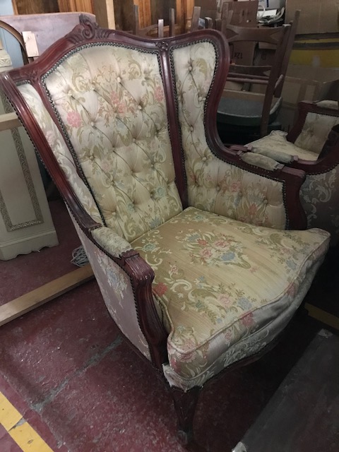Sofa estilo clasico, francés , tapizado en capitone , Conjunto formado por sofá y dos butacas.