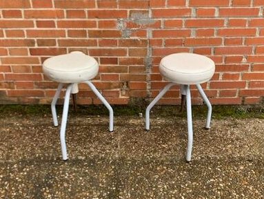 Taburete estilo industrial Realizado estructura metalica y tapizado piel blanco Taburete medico consulta