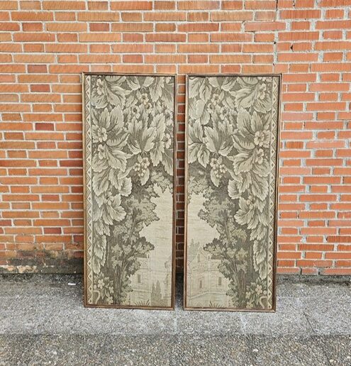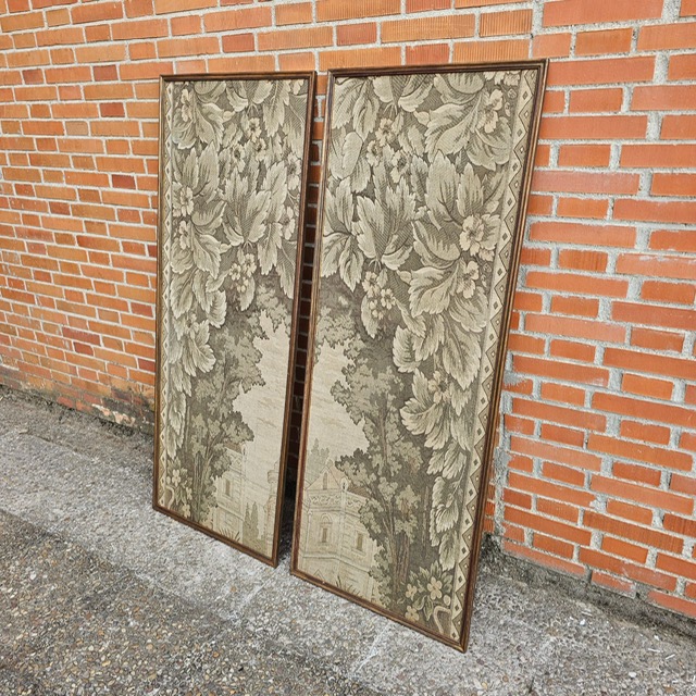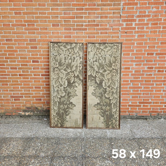 Pareja de tapices enmarcados en sentido vertical. Realizados en telar antiguo manual Estilo clásico Medida aprox 60/150